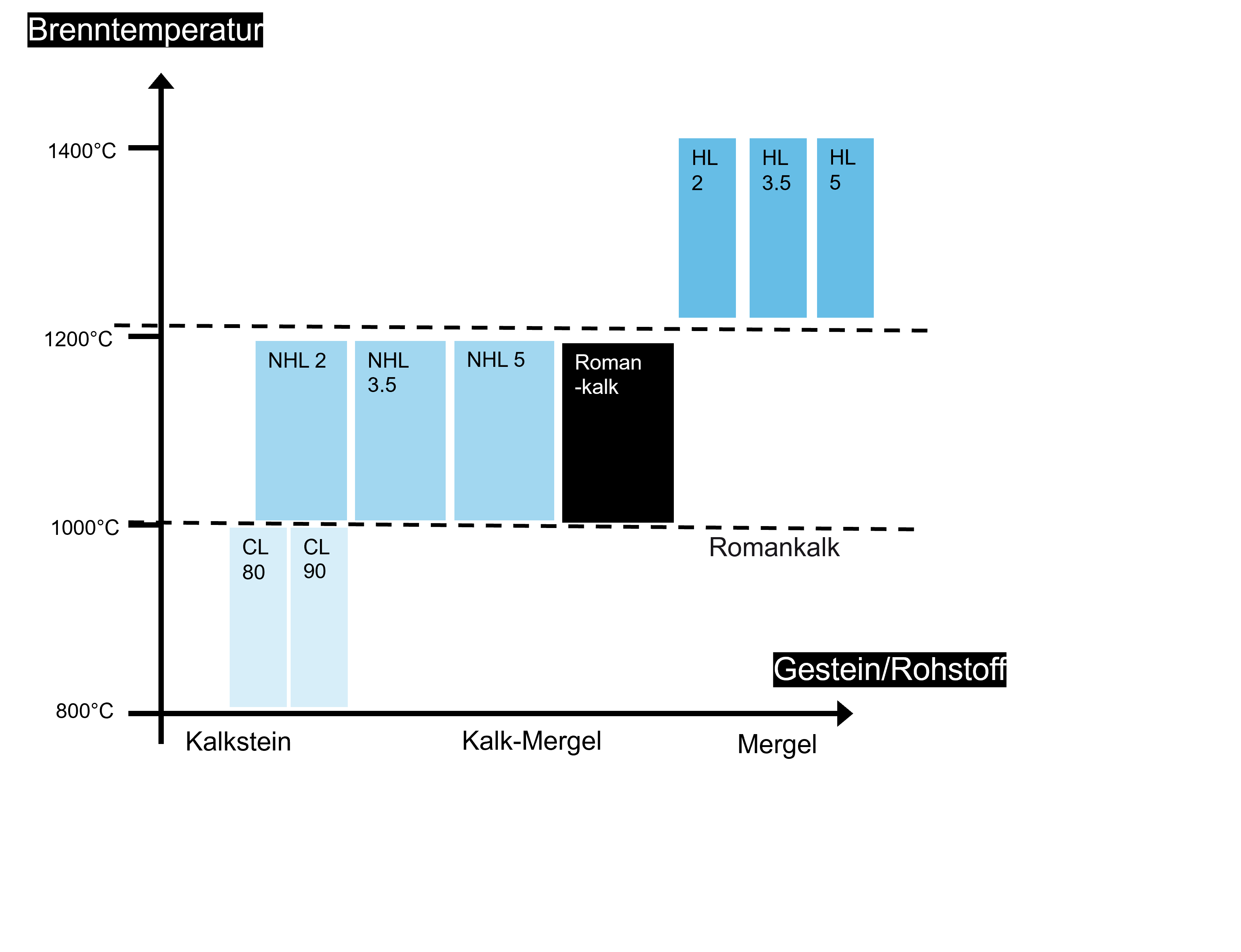 Die Unterschiede ergeben sich aus dem verwendeten Gestein – Kalkstein, Kalkmergel oder Mergel – sowie aus der Brenntemperatur.